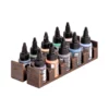 Each tray can hold five 35 mm paints. Perfect for Vallejo washes/mediums, Liquitex inks, and AK interactive/Tamiya 10ml pots.